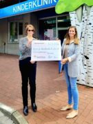 Andreas Voith und Dominik Tauber von der PSD Bank Hannover überreichten den symbolischen Scheck bereits am 25.02.2022 vor der Kinderklinik der MHH an Elke Werth und Irma Plünnecke vom Verein für krebskranke Kinder Hannover e.V. Die Spende wird für die Bereiche Elternwohnungen und Sporttherapie verwendet.
