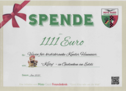 Viele tolle Aktionen wurden durchgeführt. Eine dieser Aktionen sah vor, dass 96plus beim Verkauf von Trikots der 96-Fußballschule jeweils EUR 5,00 für eine Organisation oder Verein der Wahl dazugibt. Insgesamt 113 Einkäufe gingen zugunsten unseres Vereins für krebskranke Kinder Hannover e.V.
