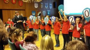 Ein Schirm war nicht erforderlich, als Hildesheimer Schüler im großen Sitzungssaal des Rathauses eine Regenwolke öffneten und Oberbürgermeister Ingo Meyer die herausfallenden Tropfen zu der sensationellen Spendensumme von 25.986,20 Euro umdrehte. Es ist kaum zu glauben, dass es den Schülern gelungen ist, den Erlös des letzten Weihnachtsmarktes noch zu übertreffen. An ihrem „Stand der Schulen“ beim Weihnachtsmarkt in Hildesheim konnten sie durch den Verkauf von selbstgemachten Werken diesen großartigen Erfolg zu erzielen.