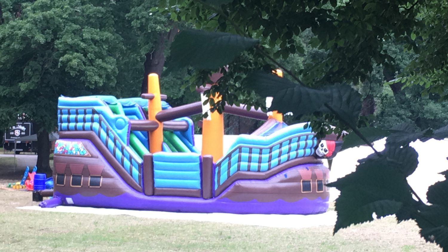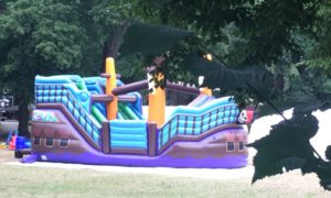 Sturm und Regen macht echten Piraten natürlich nichts aus und so enterten die kleinen Gäste die Piratenschiff-Hüpfburg in Nullkommanichts.